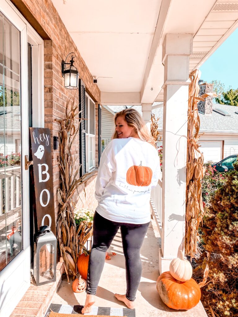 Yes!! Give me all the fall tees! ! I just love all these adorable fall, designs from Bueller Design Co.! I’m in love with this white pumpkin sweatshirt they sent me! This boutique shares cozy times and good vibes!! Such a magical little shop!