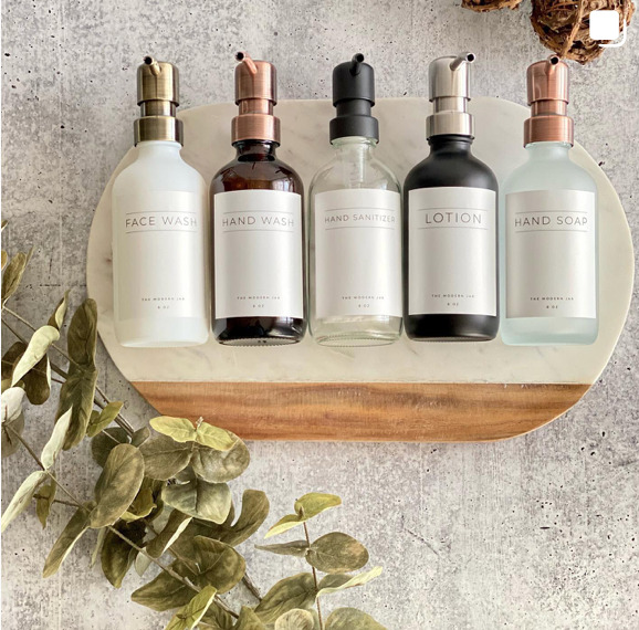 I’m totally in love with all the gorgeous glass soap and lotion bottles ! The Modern Jar is an Etsy shop that makes beautiful glass jars with metal pumps and waterproof labels. They have a simple & classic style and are sure to spruce up any bathroom or kitchen!